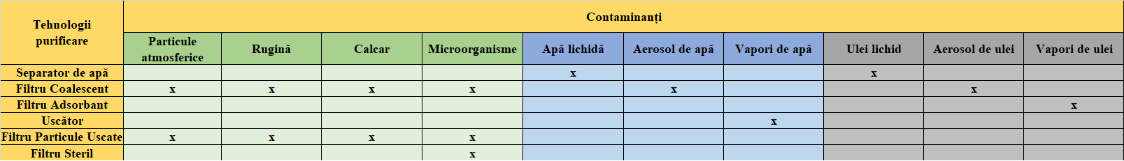 Contaminanții tratați de filtrele coalescente includ: